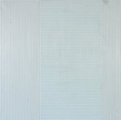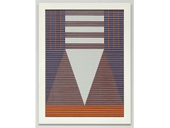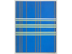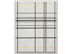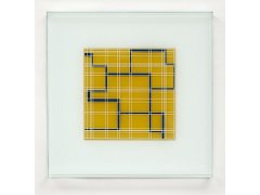 Both the paintings and printing on glass involve geometric ordering and the predominance of empty space. Reference points include the De Stijl movement and the linear structures of the Argentinian artist Carlos Cairoli.